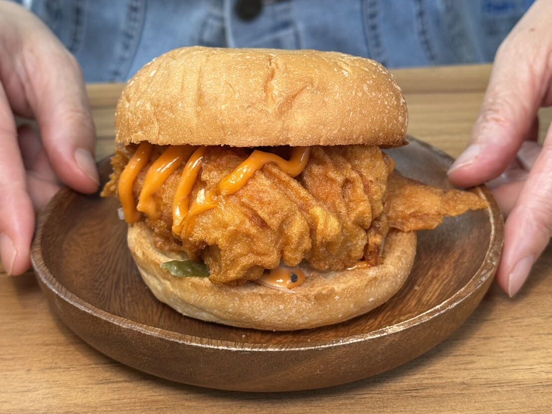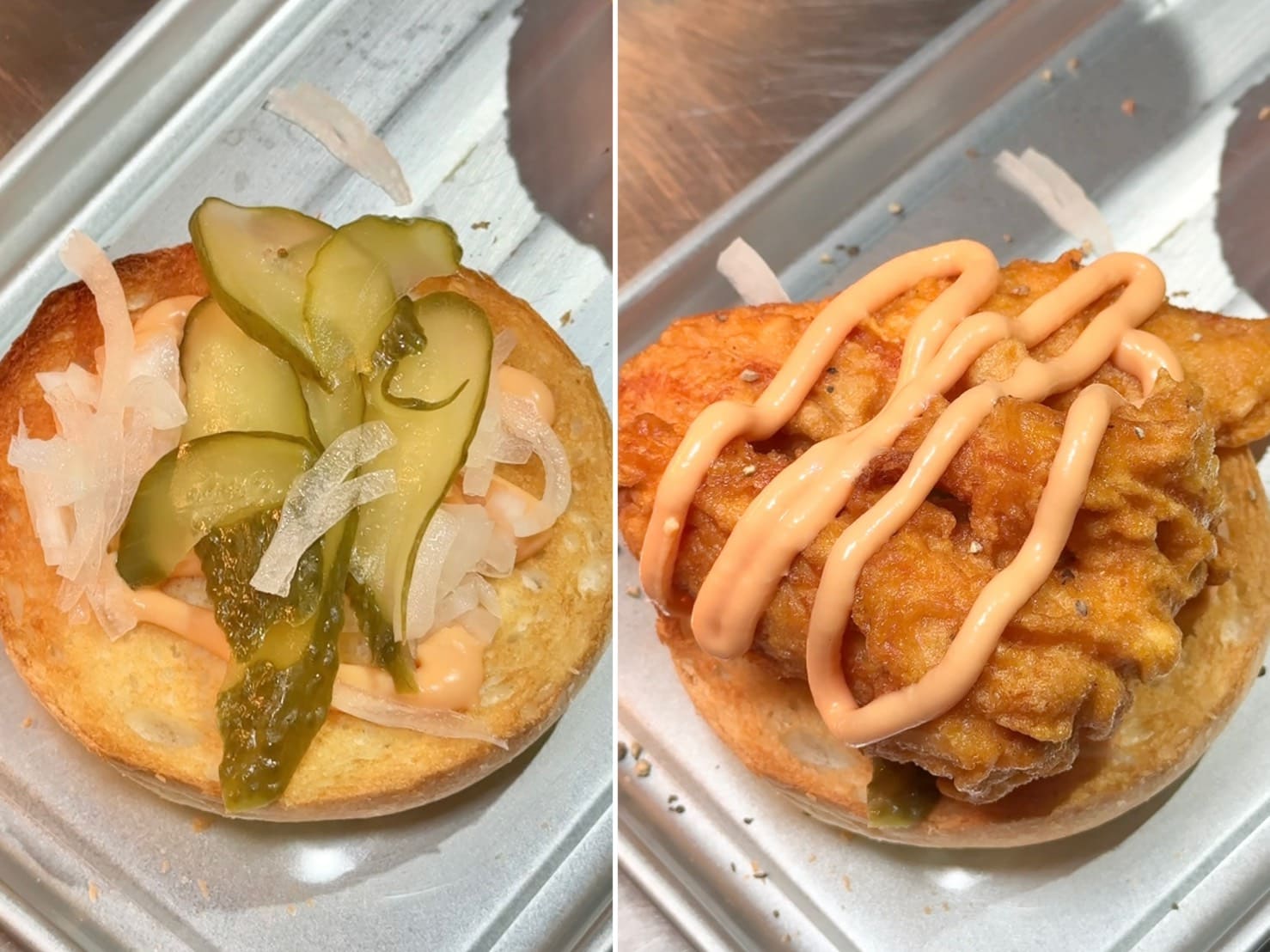 ▼厲害的是配料的組合:洋蔥絲增添爽脆口感、千島醬濃郁酸甜、黑胡椒粒的辛香,整體吃起來很有層次。我覺得酸黃瓜是靈魂!它的酸甜感不僅中和了油炸的厚重,還讓整體口味更清爽有層次。