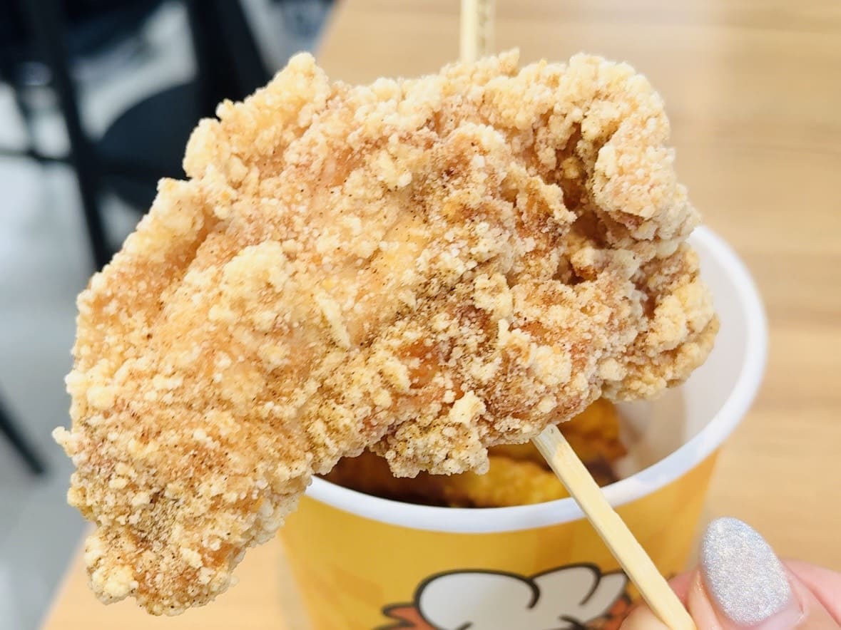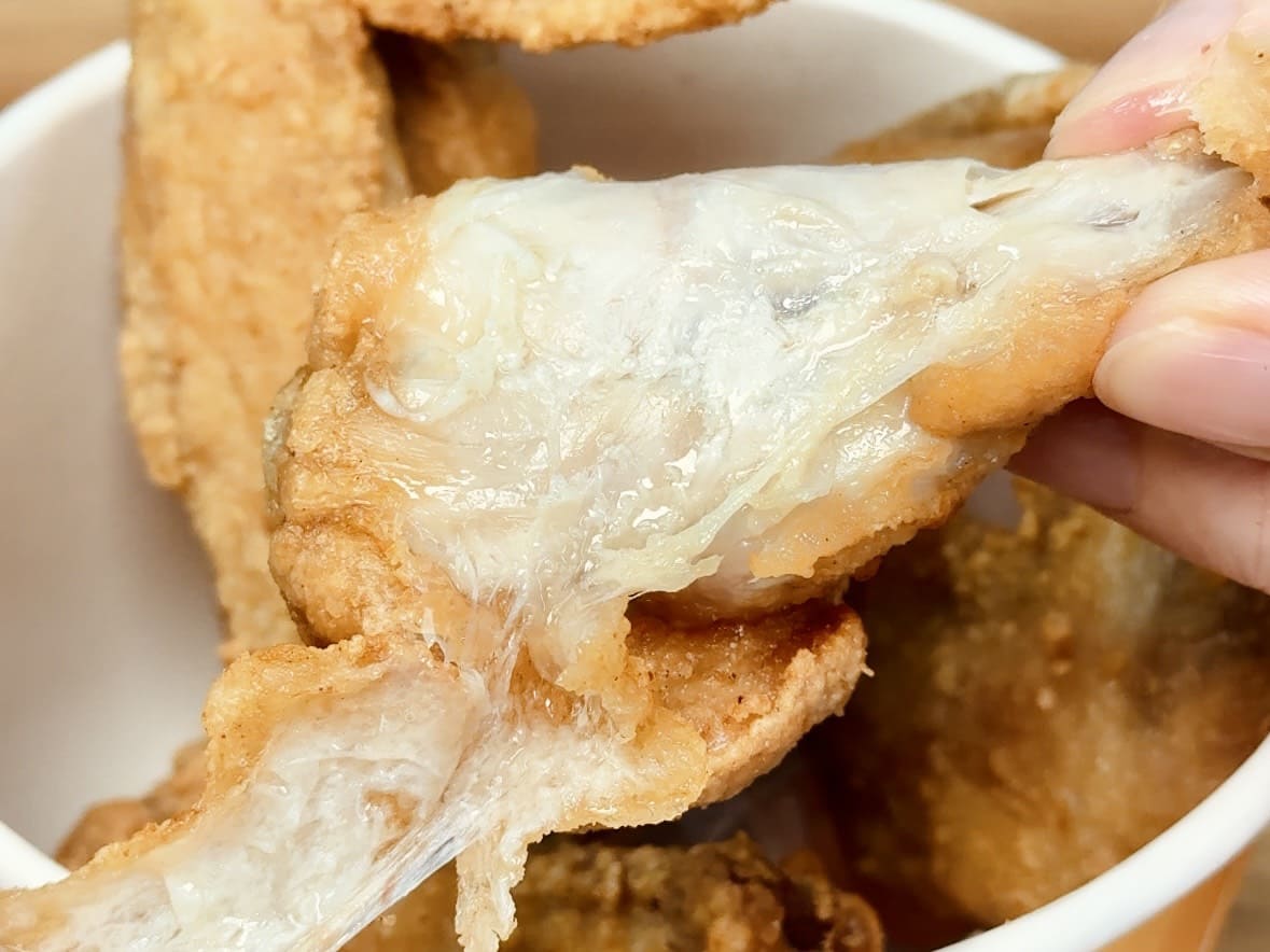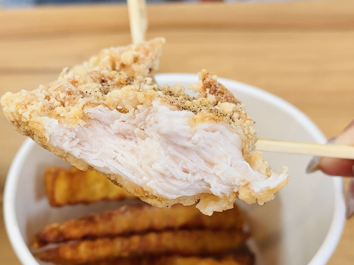 ▼無骨嫩雞胸肉質厚實卻不乾柴,外層炸得金黃酥脆,一口咬下去依然保有鮮嫩多汁的口感。重點是「無骨」設計,完全不用啃骨頭,邊吃邊聊天也超方便。