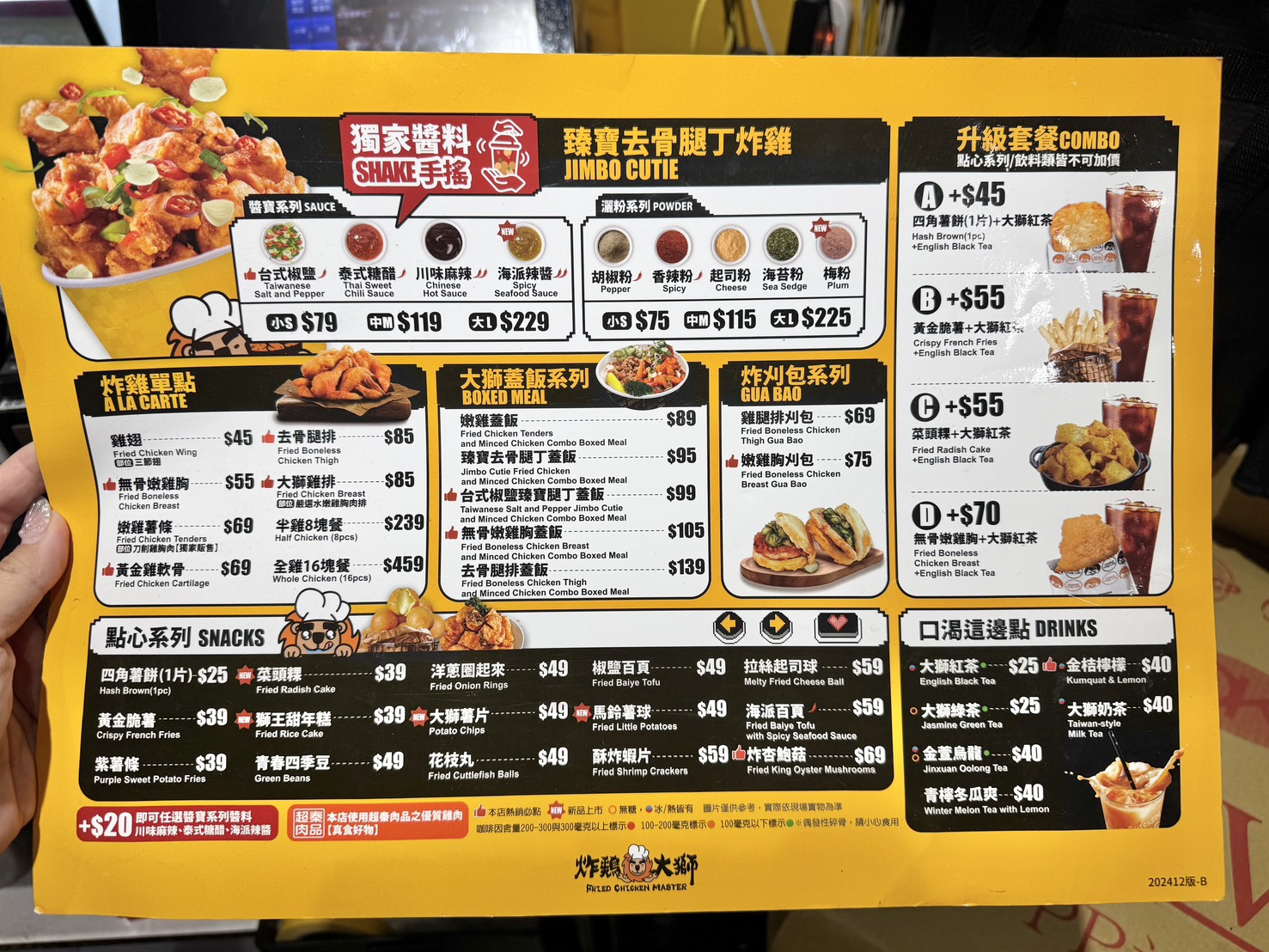 位於 信義永吉路30巷 的 炸雞大獅信義永吉店 是附近上班族的外帶炸物熱門選擇。必吃新品 雞柳漢堡 外層酥脆、內裡肉汁飽滿,搭配酸黃瓜和千島醬,每口都香甜清爽;薄脆雞翅 麵衣薄酥、肉質多汁,鹹香適中;還有 波浪地瓜薯條,厚實綿密、香甜可口,加上梅子粉鹹甜交錯,越吃越涮嘴。對於想在信義區快速享用炸雞、或帶回家分享的人來說,炸雞大獅信義永吉店絕對是不可錯過的美食選擇。