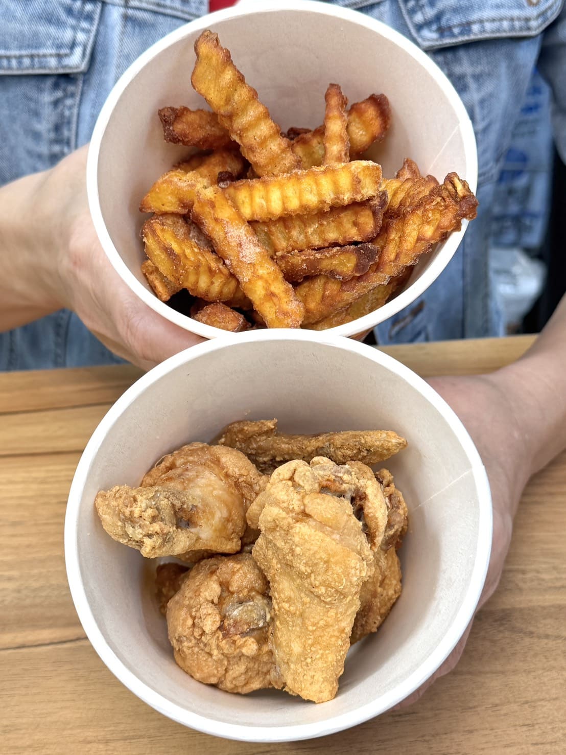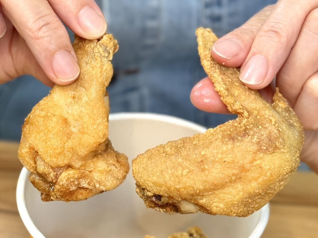 ▼份量剛剛好,小翅與小腿各三隻,一盒裡面能同時吃到不同部位的口感。小翅肉質嫩、吃起來輕鬆涮嘴;小腿則更多汁有咬勁。鹹度調得剛剛好,不需要額外沾醬就很美味,無論是配啤酒、汽水,還是和朋友一起分享,都非常對味。