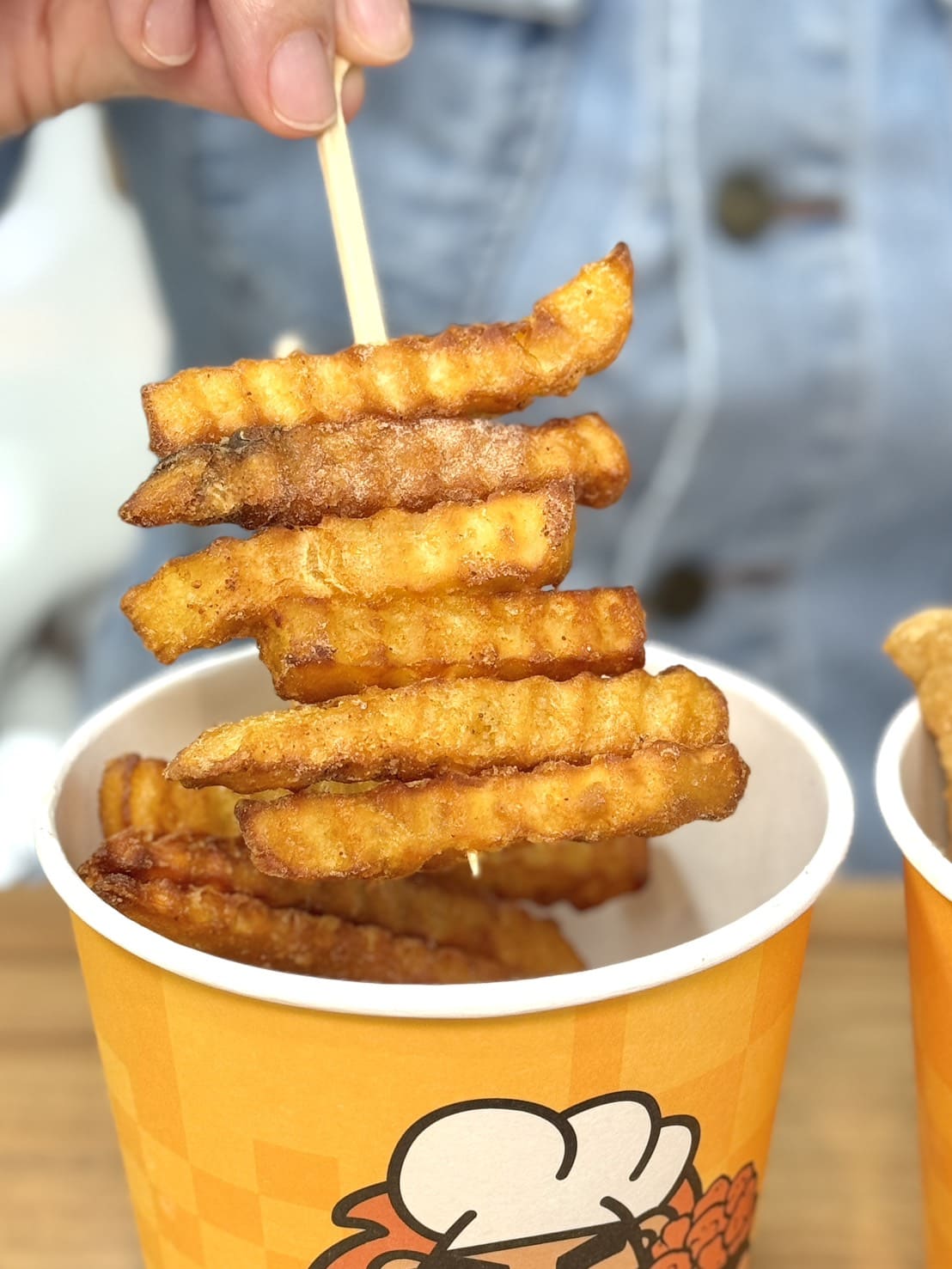 ▼新品登場的波浪地瓜薯條,比一般薯條更厚實,炸得外酥內軟,每一口都能吃到滿滿的地瓜香甜。波浪造型讓口感更有層次,咬下去時會有一種「脆+綿密」的雙重享受。
