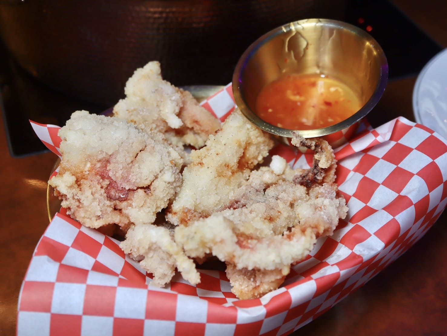 ▼透抽新鮮度滿分,炸得外酥內嫩,咬下去還帶有Q彈嚼勁,海味在嘴裡慢慢散開。麵衣裹的很薄,先吃原味感受現炸的酥脆。接著再配上一旁附的泰式醬料,酸辣中帶點微甜,完美中和炸物的油香,開胃又解膩。這盤超適合當成邊聊天邊小酌的下酒菜