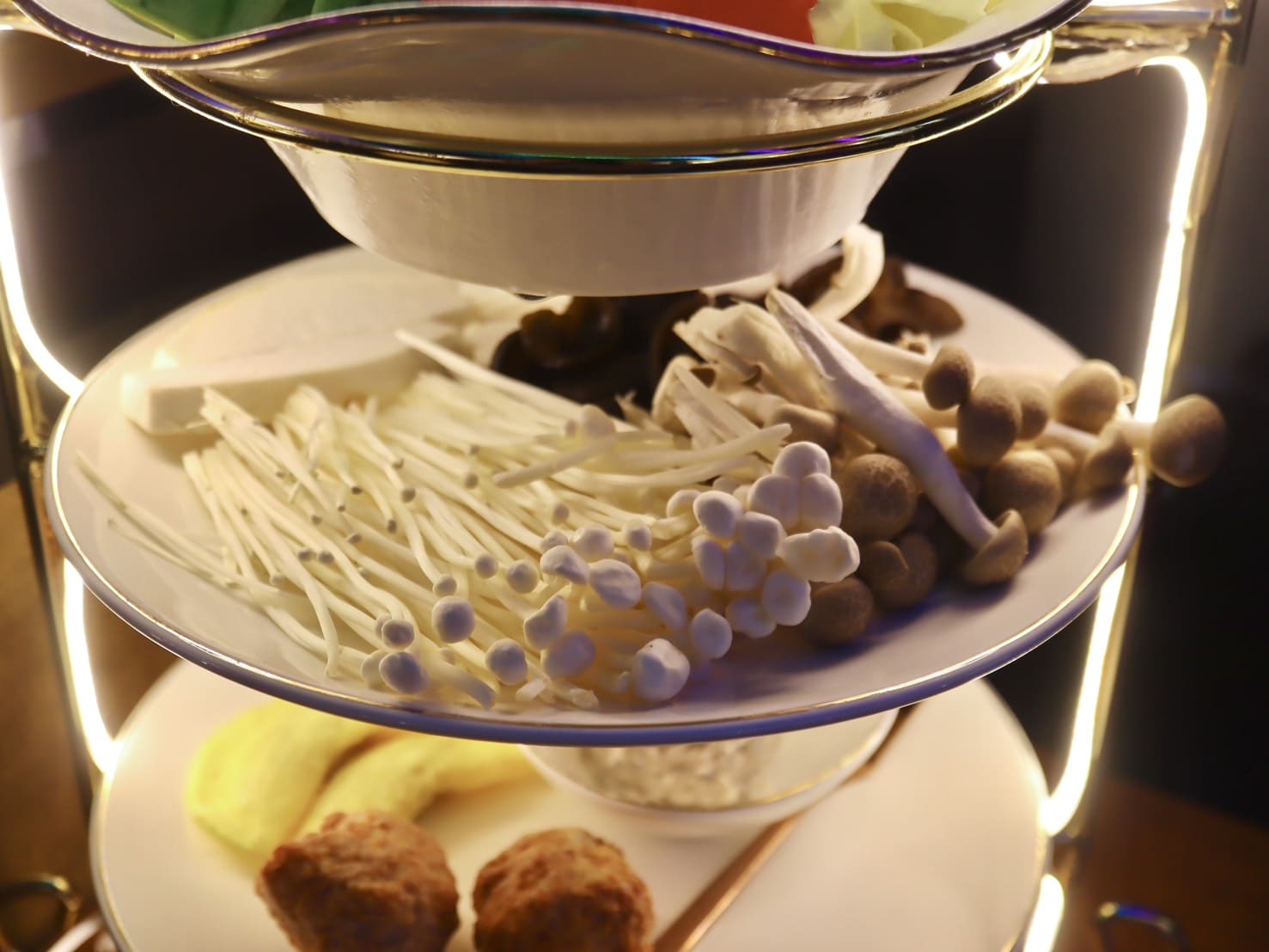 ▼這盤有金針菇、杏鮑菇、鴻禧菇、雲耳。金針菇爽脆帶點嚼勁吸附湯汁精華;鴻禧菇滑嫩柔軟;雲耳則帶有淡淡膠質口感,讓整體更添一層層次。
