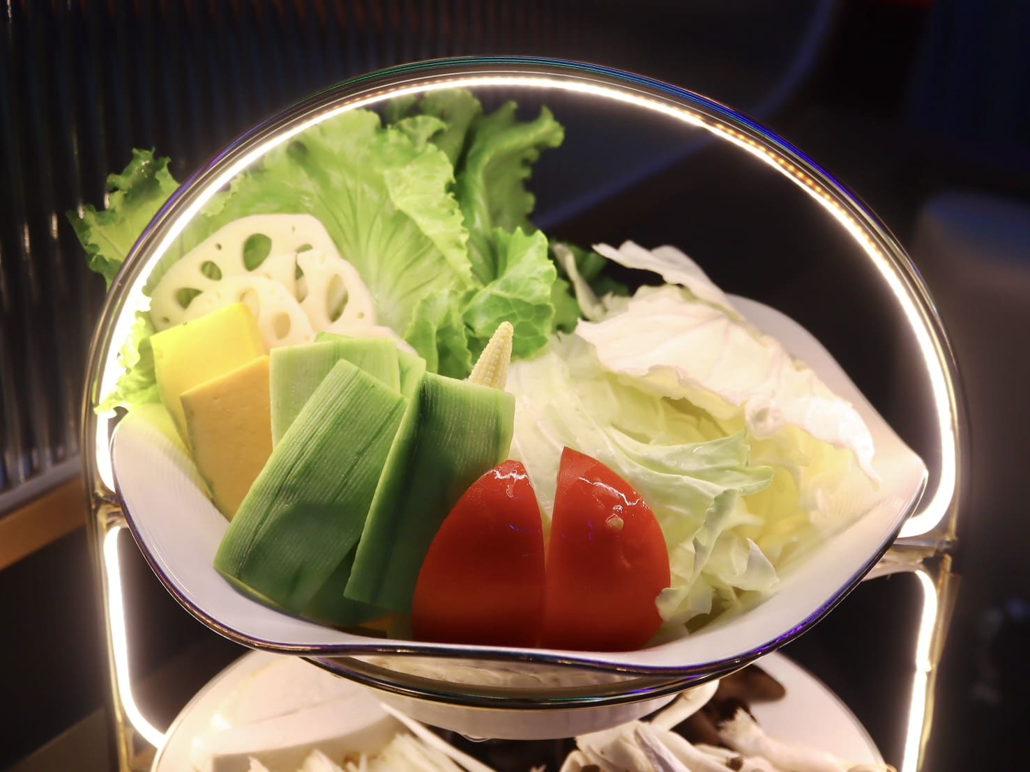 ▼這盤色彩超繽紛!新鮮蔬菜丟進鍋裡煮就能吃出自然甜味。有蓮藕、絲瓜、甜栗子南瓜、牛番茄、玉米筍、高麗菜、季節時蔬。這些蔬菜讓湯頭越煮越甜,層次整個被拉高。節時蔬的搭配每次都不太一樣,會隨時令更換,讓人每來一次都能吃到不同驚喜。