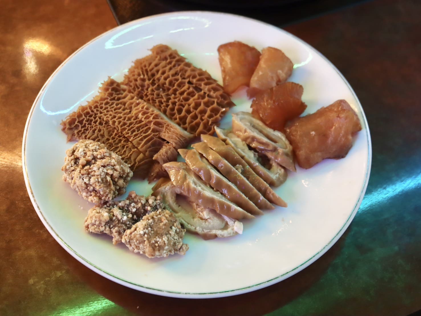 ▼吃麻辣鍋絕對不能少的班底!有牛筋、牛肚、肥腸、自製排骨酥。把他們丟進「九葉青花椒鍋底」,牛筋Q彈咬下去滿滿膠質感;牛肚脆口帶點嚼勁,吸飽花椒香氣後每一口都超香。肥腸處理的乾淨沒有腥味,外Q內軟嫩;自製排骨酥更是整盤的靈魂!外層炸得酥香,吸飽湯汁後整個超級涮嘴。這盤吃起來就是那種「香、麻、嫩、Q」!鹹香濃郁又不膩口