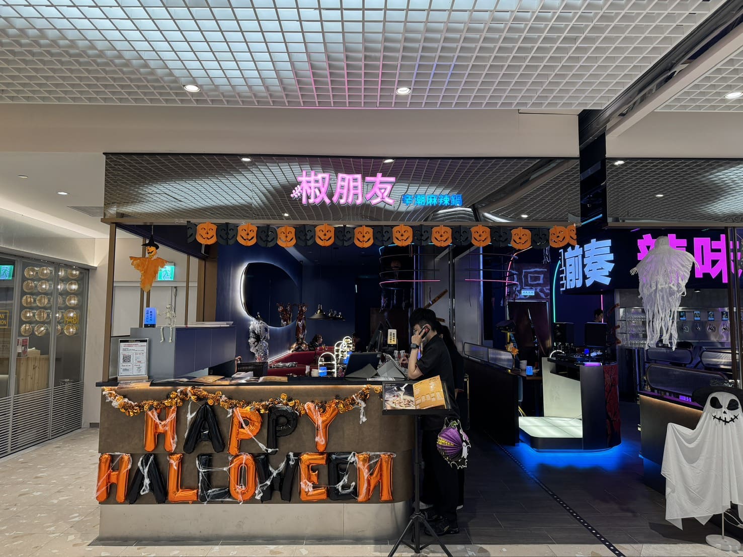 ▼椒朋友辛潮麻辣鍋‑台北夢廣場店位在信義區 DREAM PLAZA 的四樓,交通非常方便,從捷運市政府站走過來大概十分鐘內就能到。整棟商場本身就充滿潮流感,而進到店內更像進入了一個融合火鍋與小型派對的空間。